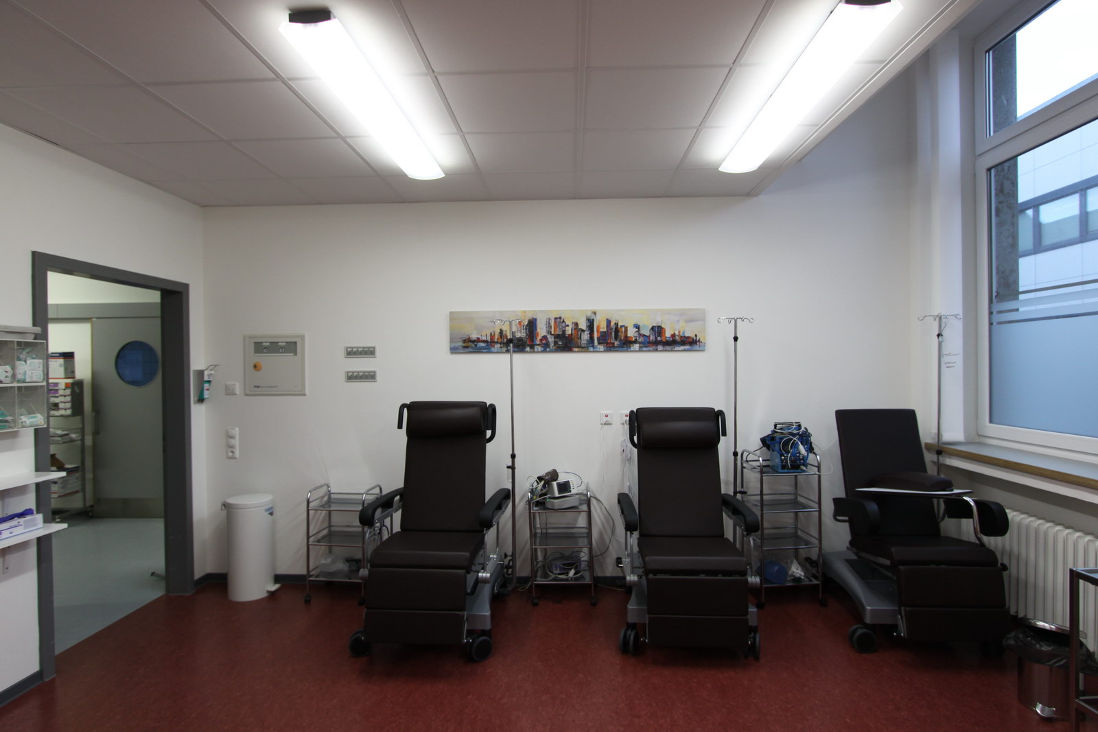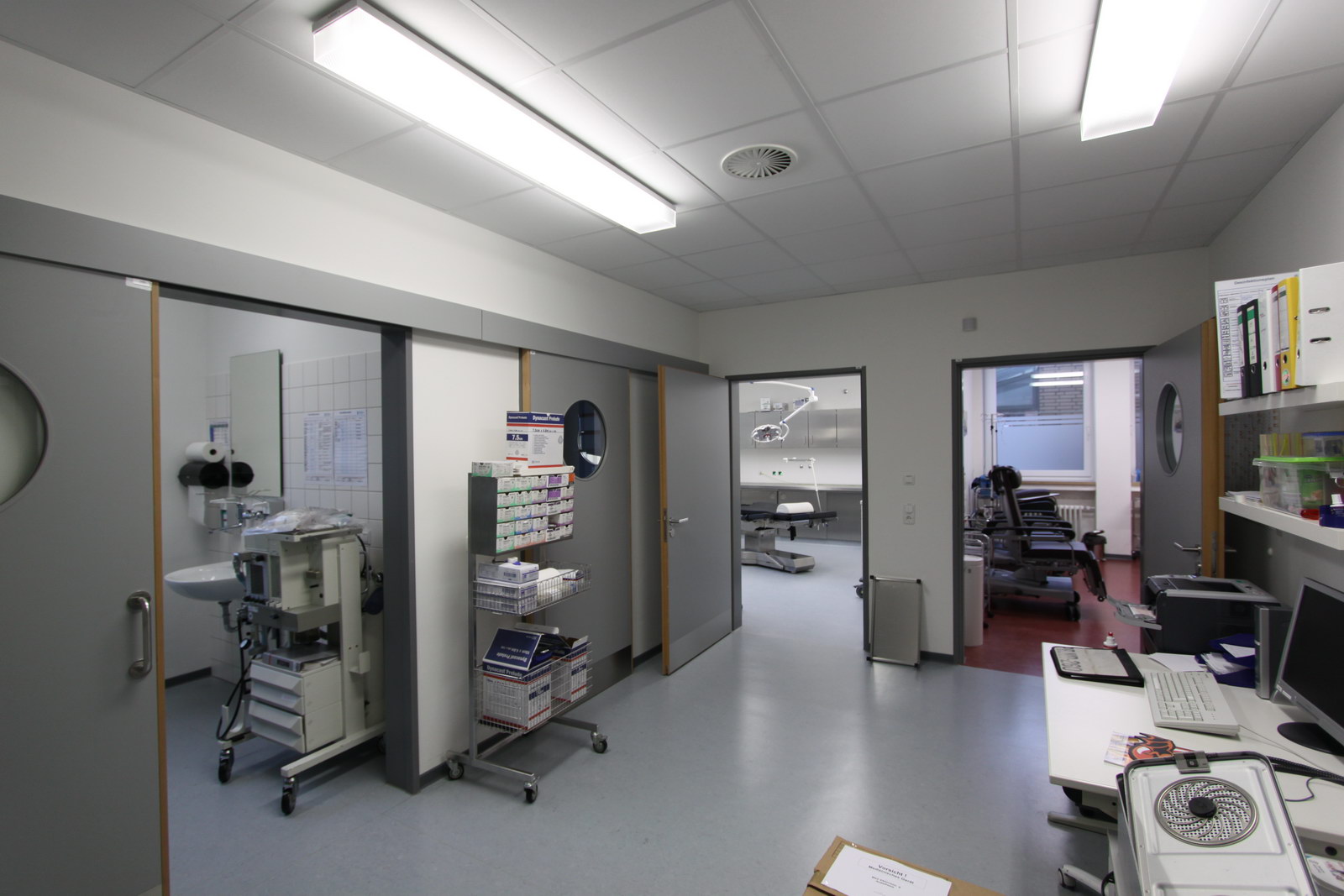 Errichtung von drei Fachbereichen einschließlich Röntgenraum im ursprünglichen Tresorraum sowie zwei Eingriffsräumen (septisch/aseptisch) mit Aufwachbereich für ambulante Eingriffe.